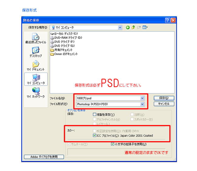 印刷ファイルの保存形式は「psd」でご入稿ください。